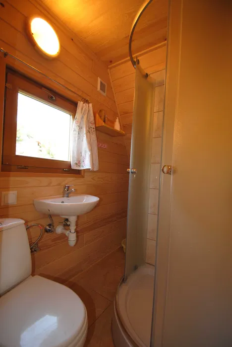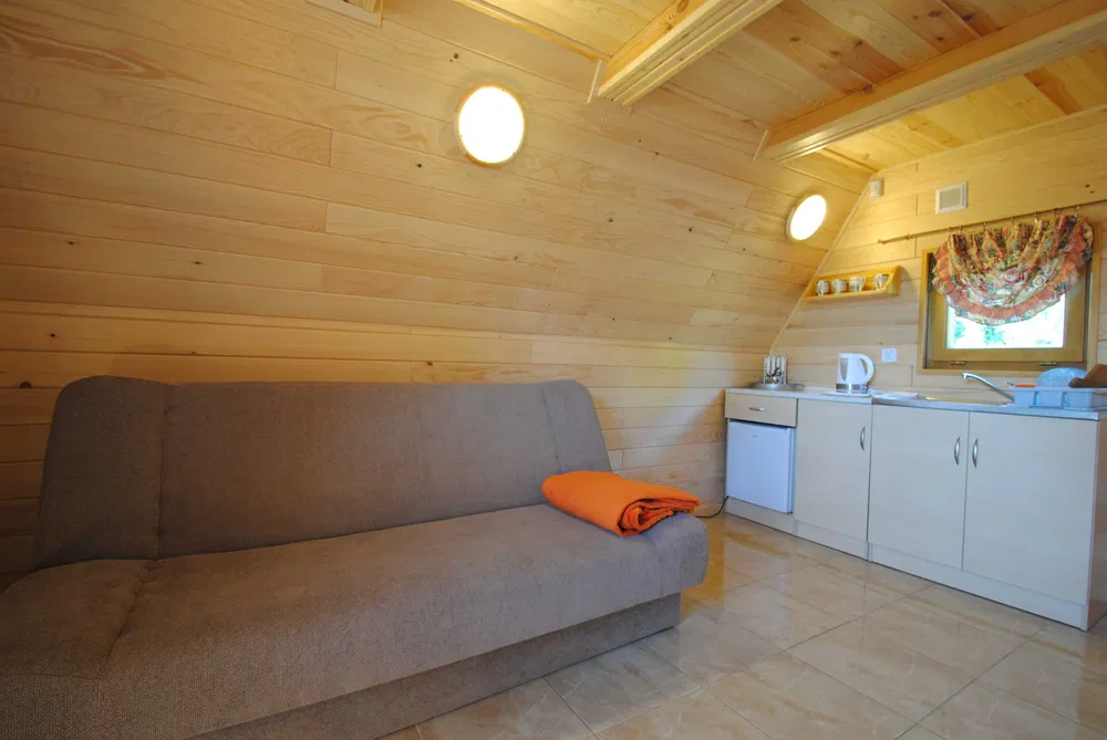 Tak, każdy domek ma w pełni wyposażony aneks kuchenny – lodówka, czajnik, kuchenka, naczynia.